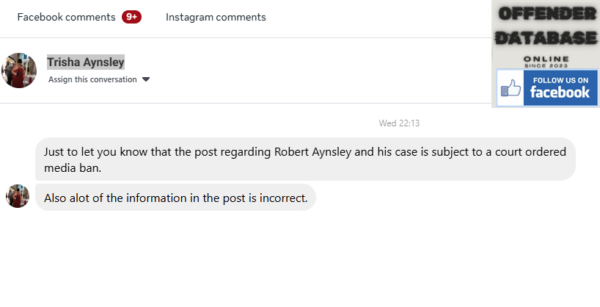 Aynsley is managed under Multi-Agency Public Protection Arrangements (MAPPA) by Sussex Police and the prison estate. Due to the “serious” and prolonged nature of his sexual offending in Horsham, his management in West Sussex is subject to high-level oversight by the Public Protection Unit.